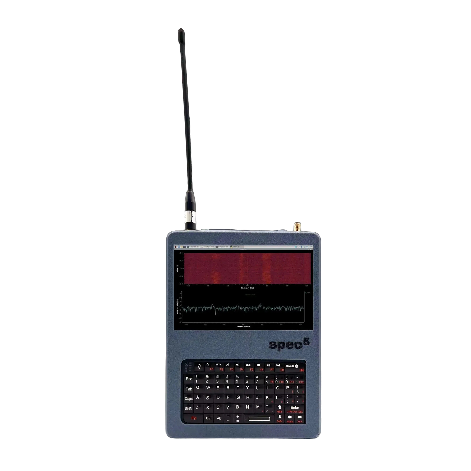 The SpecFive Nomad 2 is a compact, durable Linux workstation built for off-grid networking, SDR scanning, and mobile control. Equipped with LoRa, GPS, a 5-inch touchscreen, a QWERTY keyboard, and SSH access, it is ready for remote deployment without requiring additional peripherals.